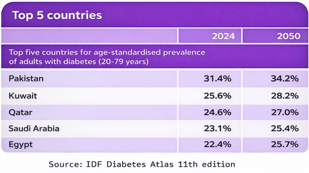 Pakistan is among the top countries affected by diabetes, with millions living undiagnosed or at high risk.