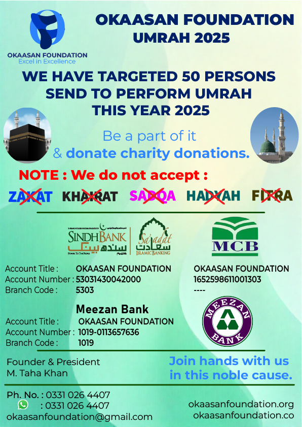 Okaasan Foundation is a Non-Profit Organization and was registered in 2024 / 2025 in Pakistan having registration number KAR NO. 058 2024-25.